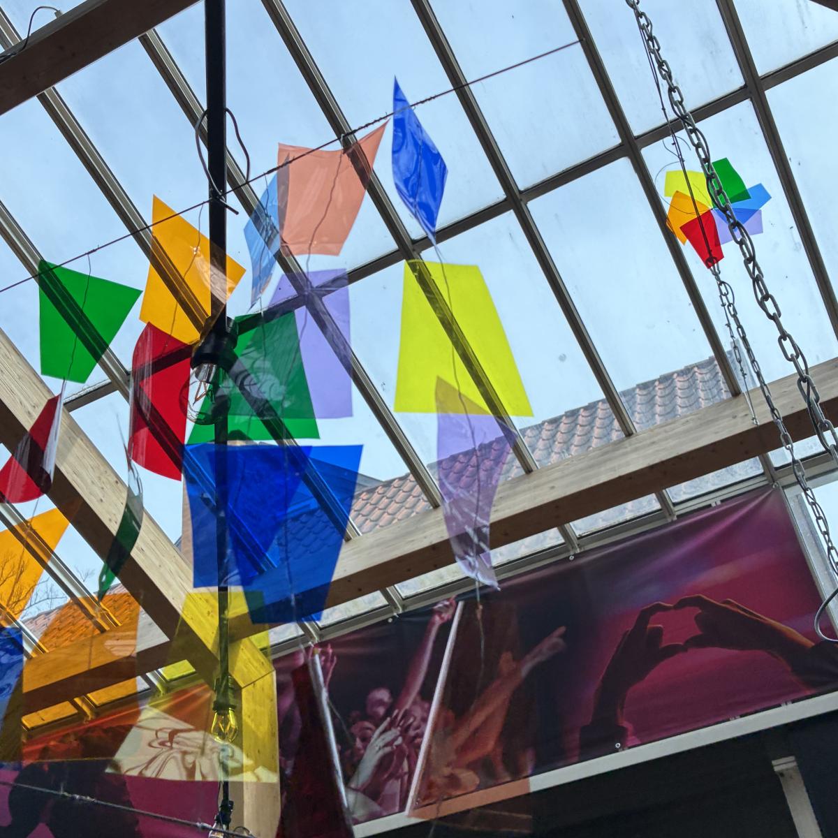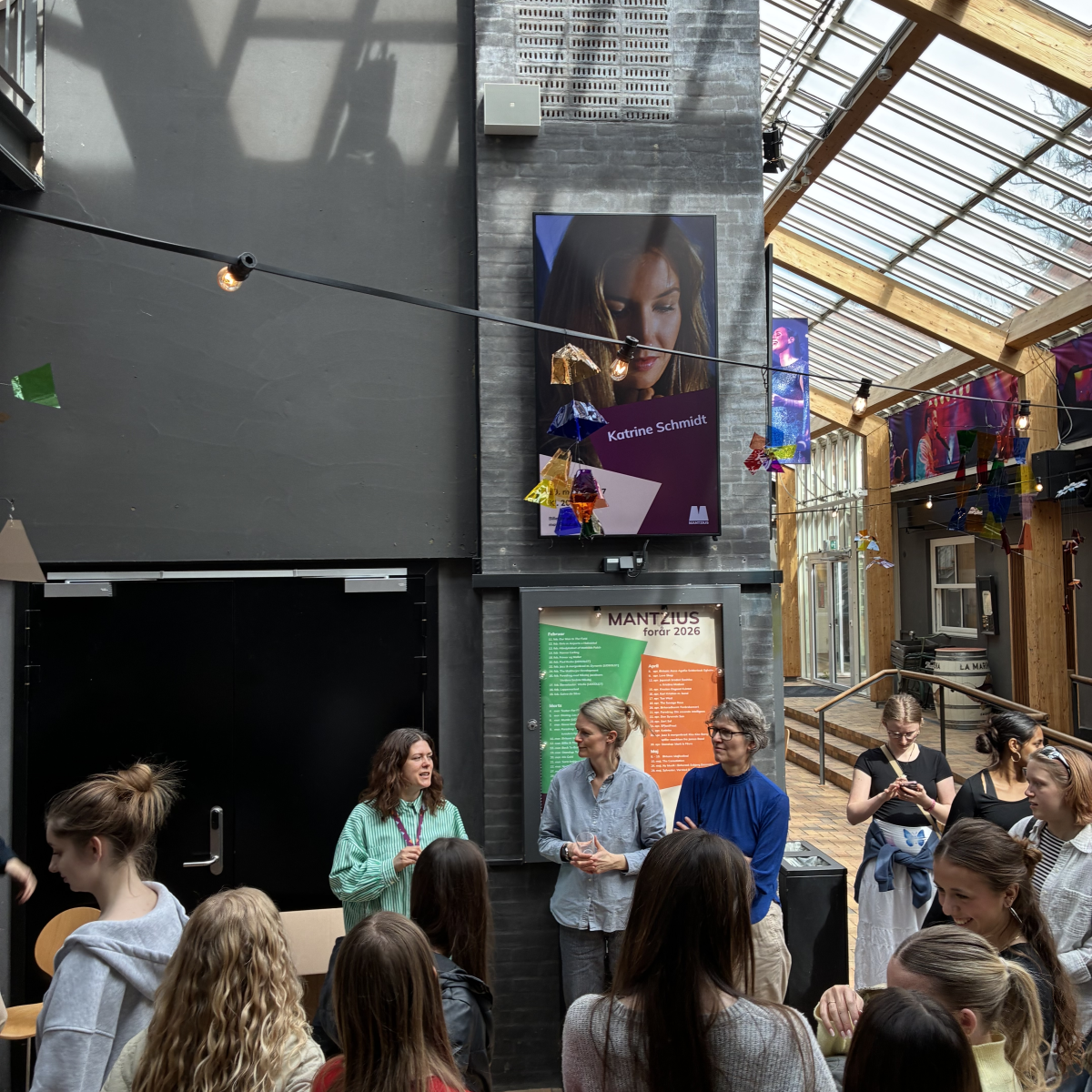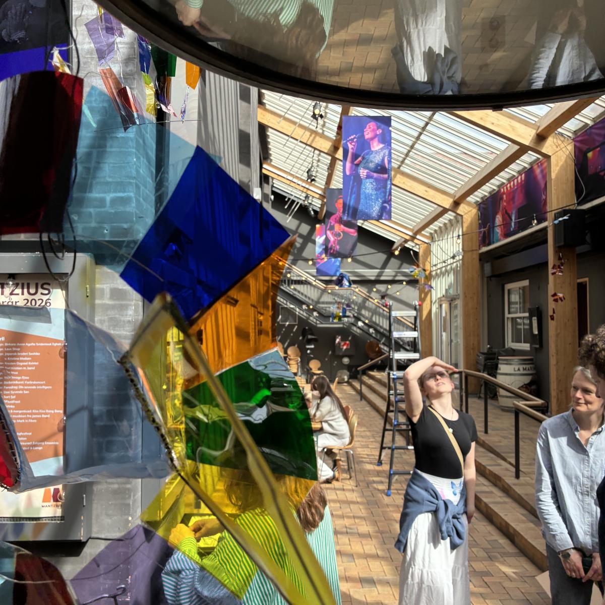 Birkerød Gymnasiums arkitektur- og designelever har i foråret 2026 arbejdet med lys og bevægelse og skabt en masse uroer til Mantzius' foyer.